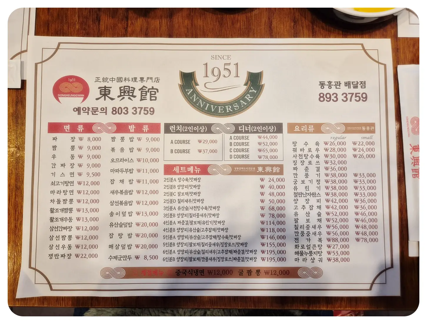 동흥관은 1951년에 오픈한 곳인데 백년가게라고 하네요.