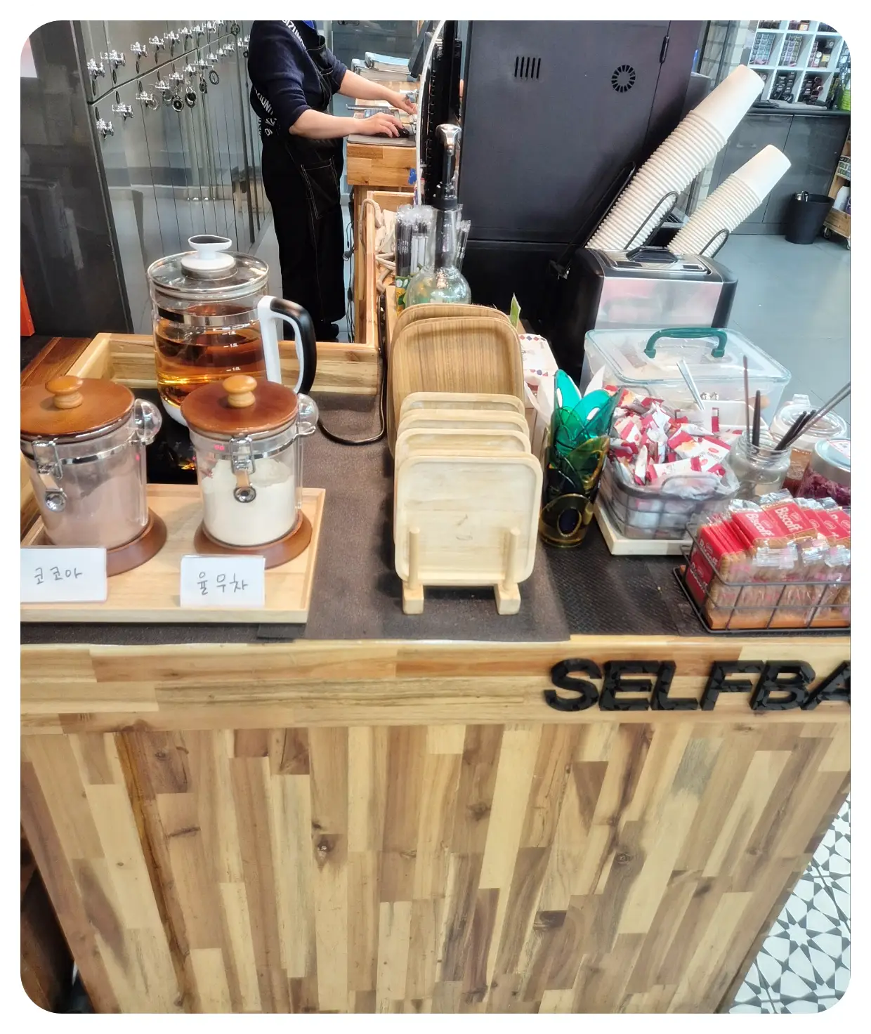 기다리는 사람이 많아서 인지 다른 미용실에 비해 셀프바가 잘 되어있어요.