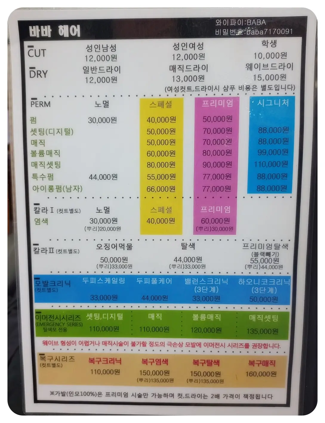 특히 뿌리염색과 커트 가격은 정말 Good이네요.
