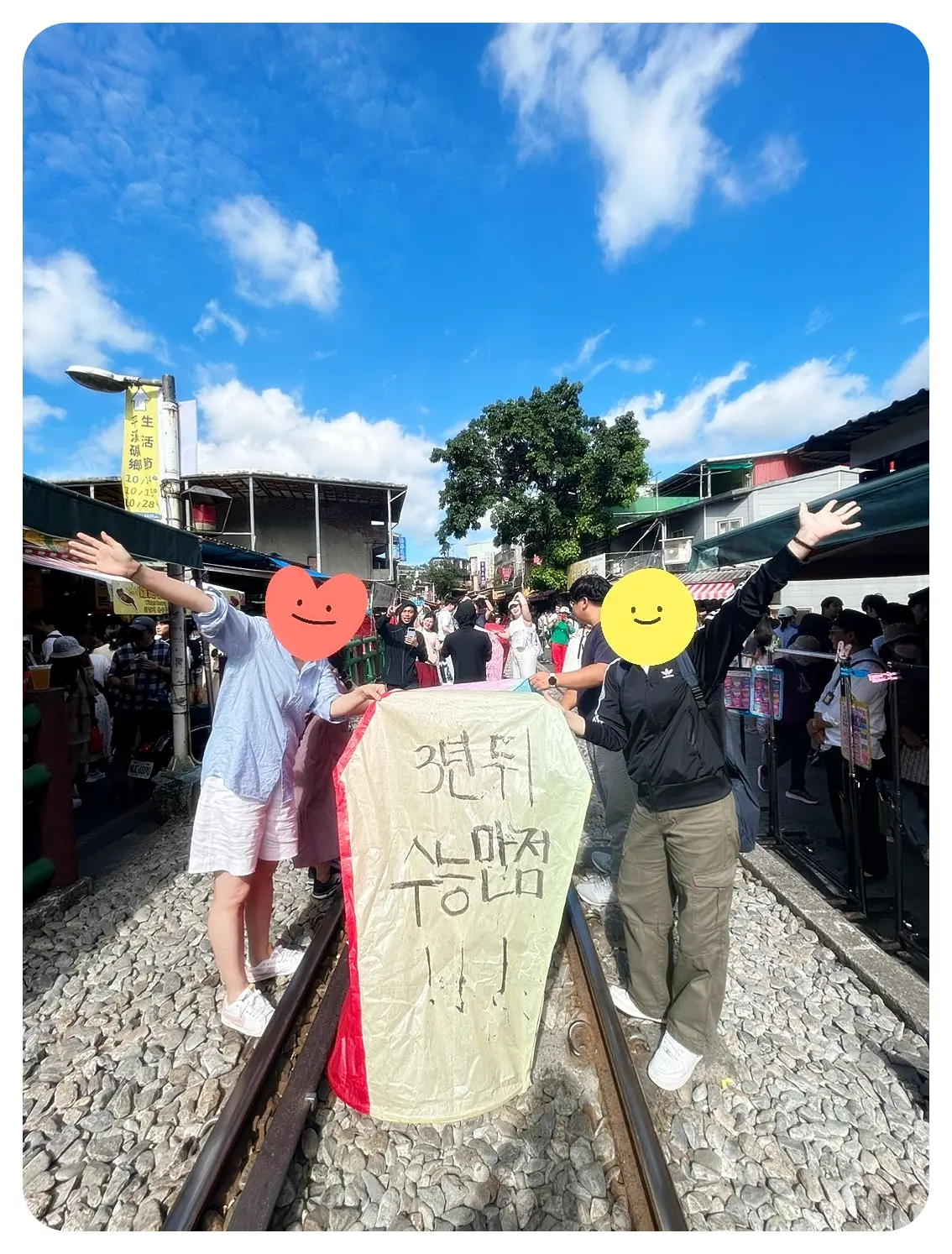 철길 위에서 소원을 빌며 날리는 천등 체험을 했는데요.