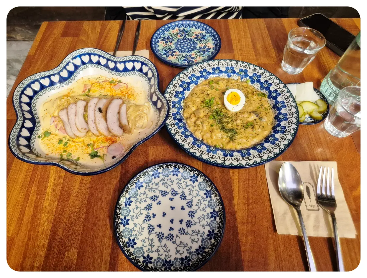 화려한 그릇에 나온 음식은 사진을 안 찍을 수 없겠죠?